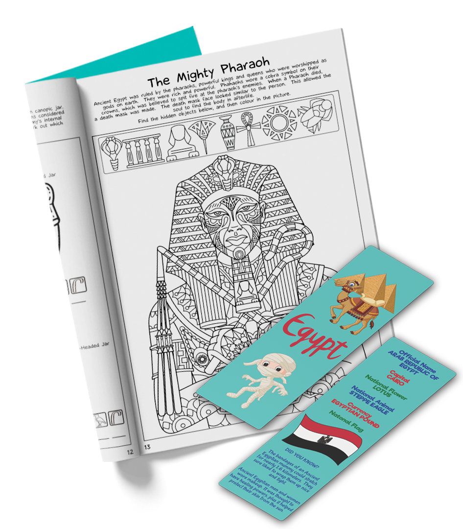 Ready, Set, Explore!  Pack your bags!  We’re headed to Egypt.  Get wrapped up in the fascinating world of ancient Egypt with puzzles, crafts etc, and test your archaeology skills, as you unearth a mummy inside its pyramid waiting to be discovered.  The Egypt Activity Pack introduces children to Egyptian culture, wildlife, famous landmarks and celebrations.  You will find lots of crafts and activities about this splendid country!.  It’s going to be a big adventure!