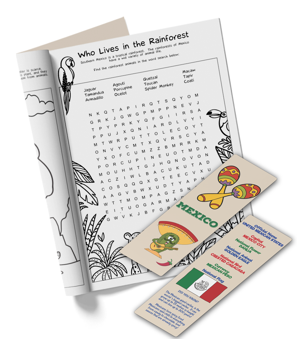 Ready, Set, Explore!  Pack your bags!  We’re headed to Mexico.  Mexico Activity Pack introduces children to Mexican culture, wildlife, famous landmarks and celebrations. You will find lots of crafts and activities about this splendid country!  It’s going to be a big adventure!